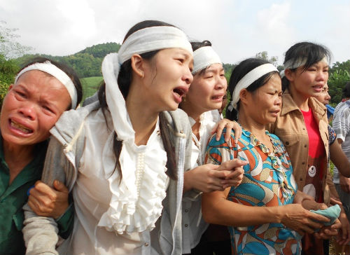 Đúng 7h sáng ngày 24/9, thi thể hai vợ chồng anh Thể, chị Thoài được người thân, bà con cùng chính quyền địa phương tiễn đưa về nơi an nghỉ cuối cùng. Dòng người đưa tang đông nghịt trên con đường ra nghĩa trang của xóm kéo dài cả cây số.