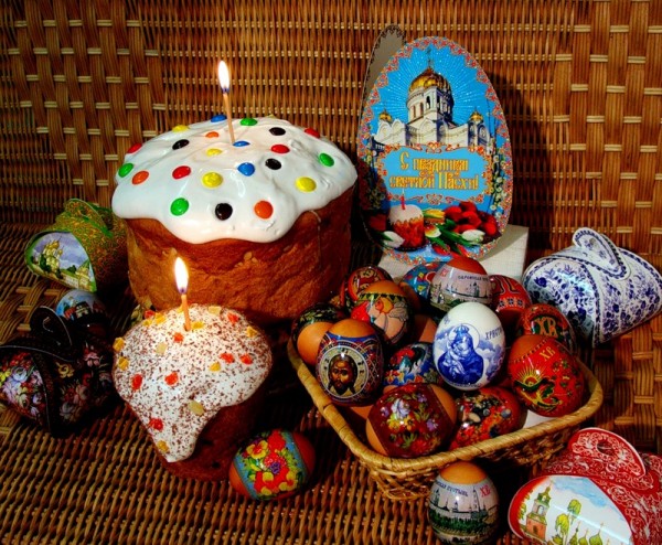 Bánh Kulich và những quả trứng được trang trí trong dịp Lễ Phục sinh