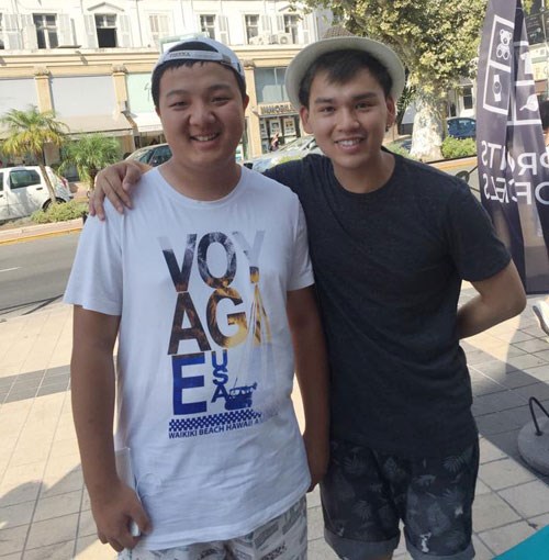 Trung Quân (áo đen) và em trai ở bãi biển Nice (Pháp)