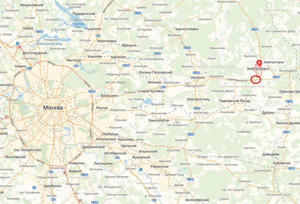 Vị trí phát hiện chiếc xe bên lề đường gần nơi rẽ vào Elektrogorsk từ cao tốc Gorkovskoe.