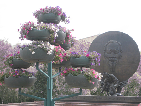 Đã hai năm qua, quanh khu tượng Bác, cứ mỗi mùa hè đến, lại có thêm 4 cây trang trí nhân tạo bên cạnh các cây bạch dương xanh ngát, mỗi cây có tới mười bồn treo hoa đủ màu sắc tươi suốt từ tháng 5 đến hết tháng 9. Đây là công việc của Công ty công viên thành phố, nó làm cho khu tượng đài Hồ Chí Minh trở nên thanh bình hơn, xanh hơn, hài hoà hơn, góp phần tô đẹp thành phố Matxcơva.