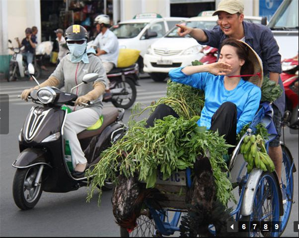 Bước xuống từ siêu xe, bất ngờ hóa thân vào vai nông dân đạp xích lô, dường như Mr Đàm và Hà Hồ muốn thể hiện thái độ của mình với Bộ trưởng Đinh La Thăng và quy định nộp phí bảo trì đường bộ.
