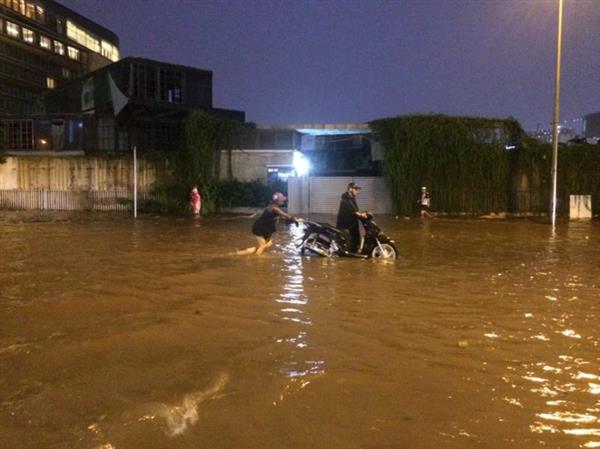 Ghi nhận ở đoạn đường Xuân Đỉnh nối ra ngã tư đường Phạm Văn Đồng và phố Tân Xuân, nước mưa ngập ngấp nghé hai dãy nhà ven phố khiến nhiều gia đình phải dựng sẵn tường bao để ngăn nước tràn vào nhà. Cũng trên đoạn phố này, nhiều xe máy, ô tô đã bị chết máy giữa dòng khi mực nước ngập sâu.