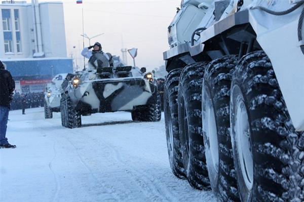 Xe thiết giáp chở quân BTR-80 của Hạm đội phương Bắc tham gia duyệt binh. Nguồn ảnh: Arms-Expo