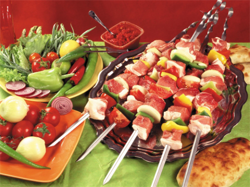 Một món chế biến từ thịt ngon nhất theo tôi, đó là thịt nướng  (шашлык). Món thịt nướng của Nga thường dành cho những buổi tụ tập bên bờ sông, trong sân nhà. Chỉ cần một chiếc lò nướng, một bao than, và một vài chai bia. Thịt bò, thịt cừu, thịt lợn, cánh gà, hoặc đùi gà được ướp với nghệ tây, rượu vang đỏ, hồi, các loại thảo quả, hạt tiêu, ăn kèm với hành tây và dưa chuột muối chua. Miếng thịt phải được thái lớn, xiên cùng với hành tây và ớt đỏ, nướng trên than làm từ gỗ bạch dương liu riu. Khi nướng rưới chút nước chua ngọt trộn với hành tím, tỏi và thì là. Mùa hè nước Nga đối với các du học sinh Việt Nam không chỉ là mùa của thiên nhiên tươi đẹp, của những quả táo, quả lê dại thơm trĩu cành, mà còn là mùa thịt nướng.