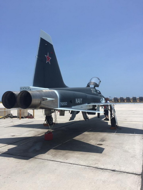 Trong bức hình dưới đây, một chiếc F-5 thuộc Không đoàn VFC-111, Hải quân Mỹ đã được sơn lại mới màu xám tương tự như nguyên mẫu thử nghiệm T-50 PAK FA số hiệu 055 của Nga.