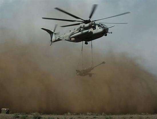 Để di chuyển những loại lựu pháo M777-A2 này Mỹ dùng tới trực thăng hạng nặng CH-53E.