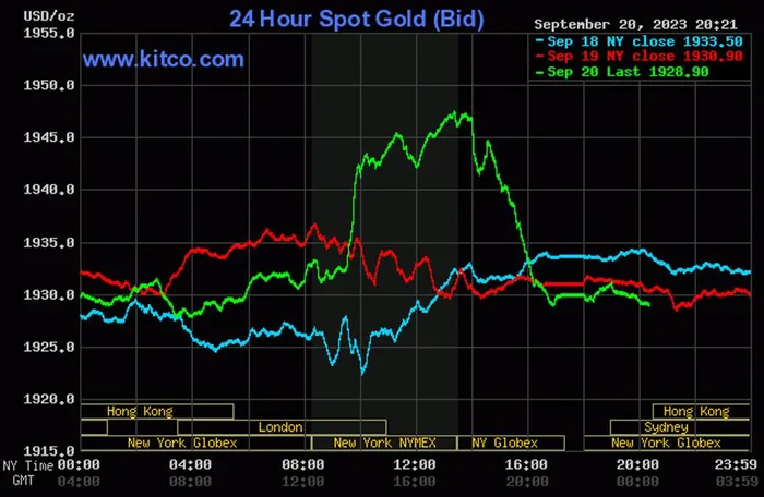 Giá vàng đêm qua (giờ Việt Nam) sau khi vọt lên gần 1.950 USD/ounce, tới sáng 21/9 đã giảm về mức 1.930 USD/ounce.