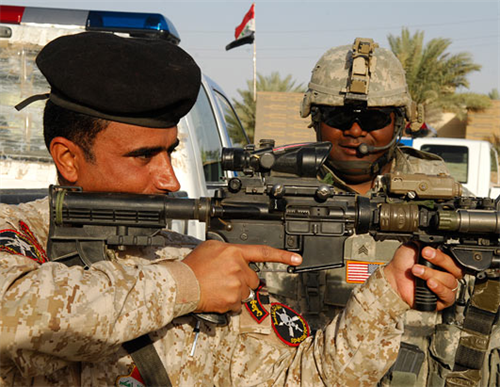 Mỹ cũng thu về nhiều triệu USD từ việc trang bị súng M16 cho quân đội Iraq. Trong ảnh là lữ đoàn 42 quân đội Iraq với súng M16.