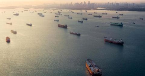 Tàu chở dầu tấp nập ở eo biển Singapore.
