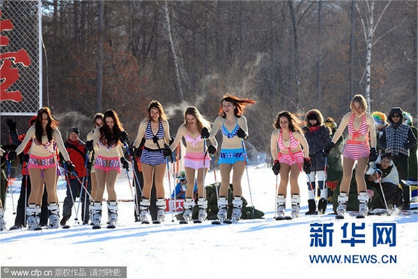 Mỹ nữ Nga, Trung "đọ" bikini dưới trời rét - 25 độ C