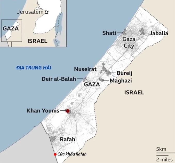 Các vùng đô thị lớn trong Dải Gaza. Đồ họa: BBC