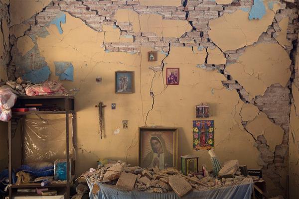 Các thảm họa thiên nhiên là điều không thể tránh khỏi, chỉ có thể hạn chế thiệt hại. Trong ảnh: Một bàn thờ phủ đầy bụi trong căn nhà đổ sụp vì động đất ở Juchitan, Mexico ngày 9-9 - Ảnh: AP