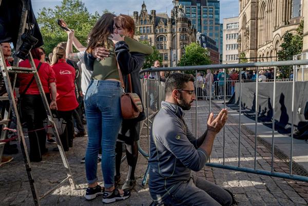 Khủng bố có thể xuất hiện ở bất kỳ nơi đâu, không chí ở những khu vực bất ổn. Trong ảnh: Người đàn ông này đang cầu nguyện cho những nạn nhân trong vụ đánh bom nhắm vào một buổi hòa nhạc ở thành phố Manchester, Anh, ngày 23-5. Những kẻ khủng bố không còn nhắm vào các mục tiêu chính trị trong năm 2017. Thay vào đó, mục đích của chúng là gây thương vong cho dân thường càng lớn càng tốt - Ảnh: NEW YORK TIMES