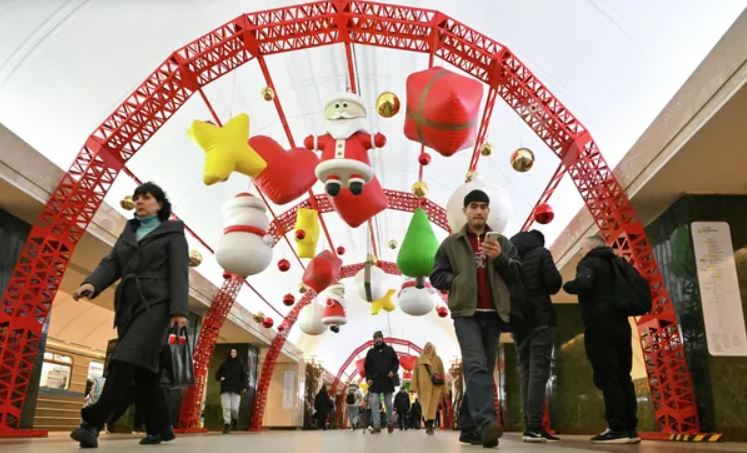 Trang trí đón Năm Mới tại ga tàu điện ngầm Trubnaya ở Matxcơva.