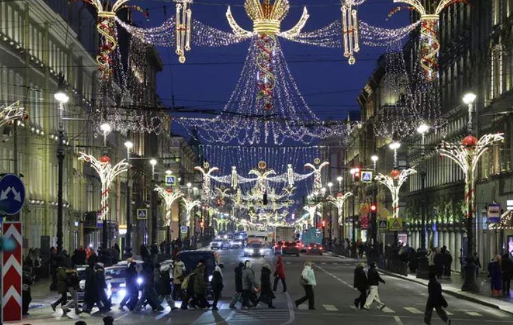 Để đón chào Năm Mới, các thành phố của Nga trang hoàng đường phố bằng đèn rực rỡ, cây thông xanh và vô vàn tác phẩm nghệ thuật lễ hội.