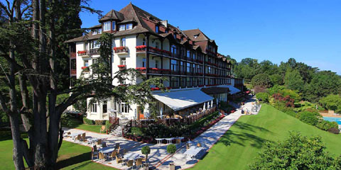 Nhìn xuống hồ Geneva, khách sạn này được xây từ năm 1909, nhưng vừa được cải tạo gần như hoàn toàn năm 2010, với 80 phòng và 11 phòng họp báo, trong một khuôn viên xanh ngát rộng 19 hec-ta, chỉ cách phi trường quốc tế Geneva 45 km và sân tập tiêu chuẩn quốc tế Camille Fournier 1 km.