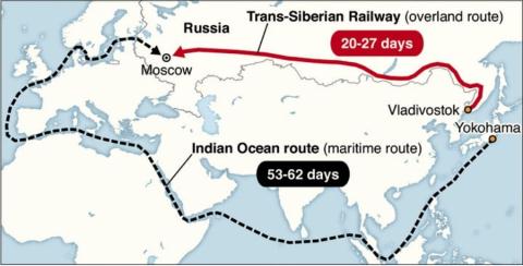 Nhật Bản đã thử nghiệm sử dụng đường sắt xuyên Siberia tới Moscow thay vì đi bằng đường hàng không hoặc đường biển xa xôi.