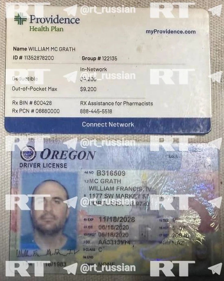 Giấy phép lái xe bang Oregon (Mỹ) mang tên William Francis McGrath - Ảnh: RT.