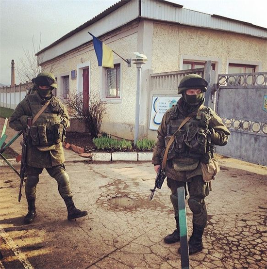 Hầu như mọi binh sĩ Nga tại Crimea sử dụng mũ bảo vệ mới, có hình dạng giống các loại mũ bảo vệ thế hệ thứ 4 đang được sử dụng rộng rãi trong quân đội các nước phương Tây. Cho đến gần đây, mũ bảo vệ kiểu cũ vẫn còn được sử dụng phổ biến trong quân đội Nga. Thế hệ mũ bảo vệ thứ 2, xuất hiện từ thế chiến thứ 2, có thiết kế khá đơn giản và làm từ kim loại. Thế hệ mũ bảo vệ thứ 3, bắt đầu được quân đội Mỹ sử dụng từ những năm 1980, làm từ vật liệu Kevlar thay cho thép, và có hình dạng đặc trưng giống mũ mà quân đội Đức sử dụng trong 2 cuộc thế chiến. Sau đó thiết kế này được quân đội nhiều nước khác sử dụng.