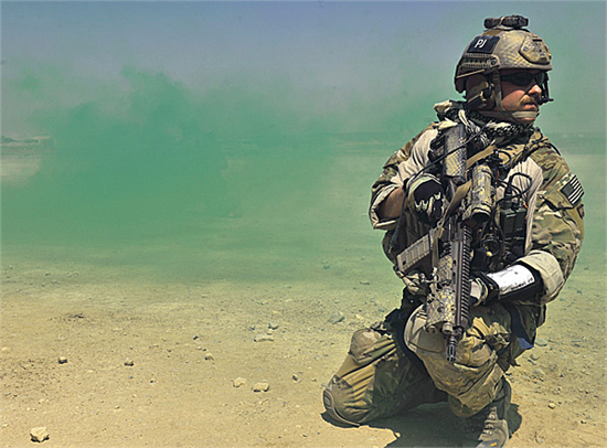 Một lính đặc nhiệm với quân phục có sẵn đệm gối