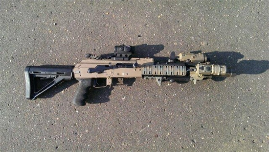 Một khẩu AK-105 được gắn thêm nhiều thiết bị phụ trợ thường thấy ở đặc nhiệm phương Tây trước đây như đèn pin Surefire, đèn chỉ thị laser PEQ-15