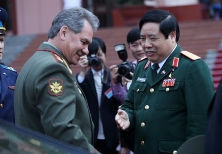 Bộ trưởng Quốc phòng Nga Sergei Shoigu và Bộ trưởng Phùng Quang Thanh. Ảnh: Talkvietnam.