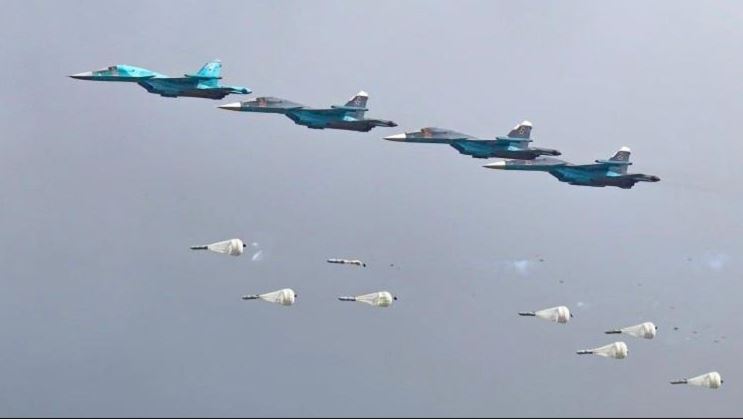 Tiêm kích ném bom Su-34 chịu trách nhiệm phần lớn các cuộc oanh tạc, và từ khi chiến sự quy mô lớn bùng nổ vào tháng 2/2022, nó đã trở thành xương sống của Lực lượng Hàng không Vũ trụ Nga. Đây là phiên bản được tăng cường mạnh mẽ từ tiêm kích chiếm ưu thế Su-27, nặng hơn khoảng 50%, có tầm bay dài nhất và khả năng mang vũ khí lớn nhất so với mọi loại tiêm kích trên thế giới.