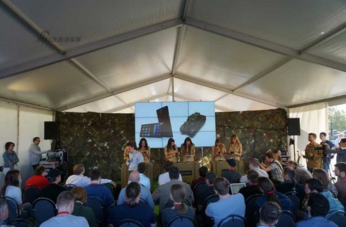 Các binh sĩ Nga hầm hồ với súng khủng tại khu vực diễn ra sự kiện quảng bá Lenovo P90.