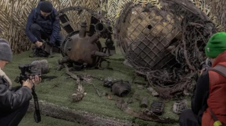 Mảnh vỡ tên lửa Oreshnik mà Ukraine trưng bày ngày 24/11. Ảnh: France24