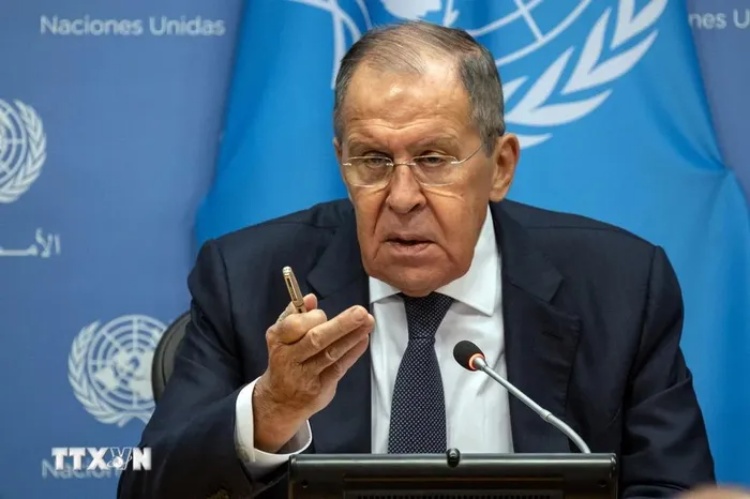 Ngoại trưởng Nga Sergey Lavrov phát biểu tại cuộc họp báo ở New York, Mỹ, ngày 23/9/2023. (Ảnh: AFP/TTXVN).