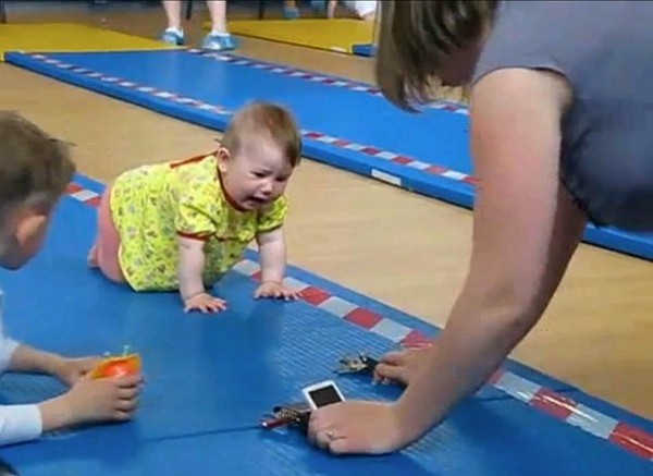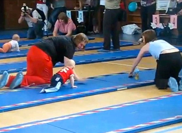 Em bé này có những động tác bò rất nhanh và dứt khoát. Một số người cho rằng cạnh tranh như thế này không tốt cho trẻ, một số khác thì có ý kiến ngược lại.