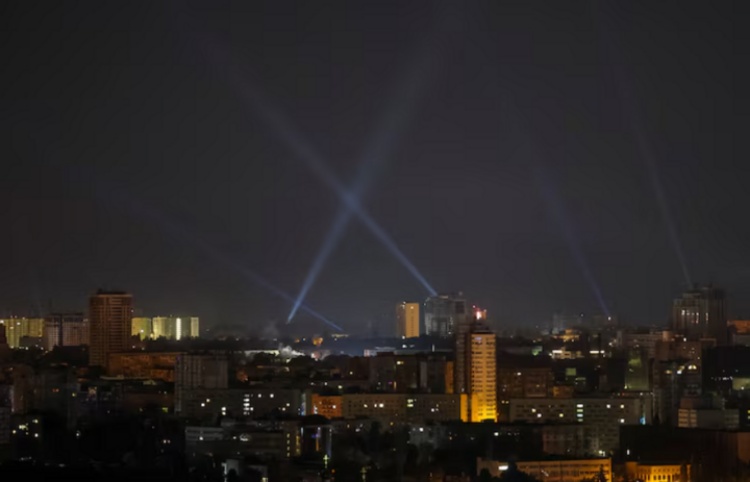 Lực lượng phòng không Ukraine bật đèn pha truy tìm UAV Nga trong cuộc không kích rạng sáng 29/8. (Ảnh: Reuters)