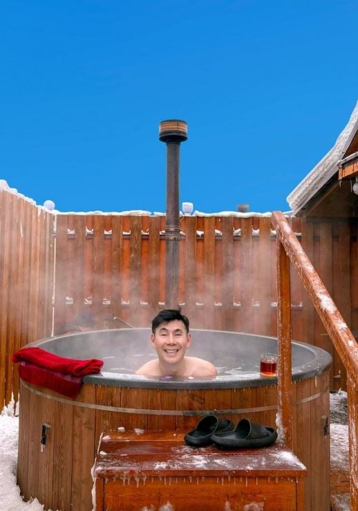 Sau chuỗi hoạt động, Đoan Trường thư giãn bằng cách tắm ngoài trời trong điều kiện