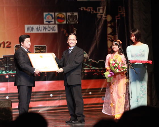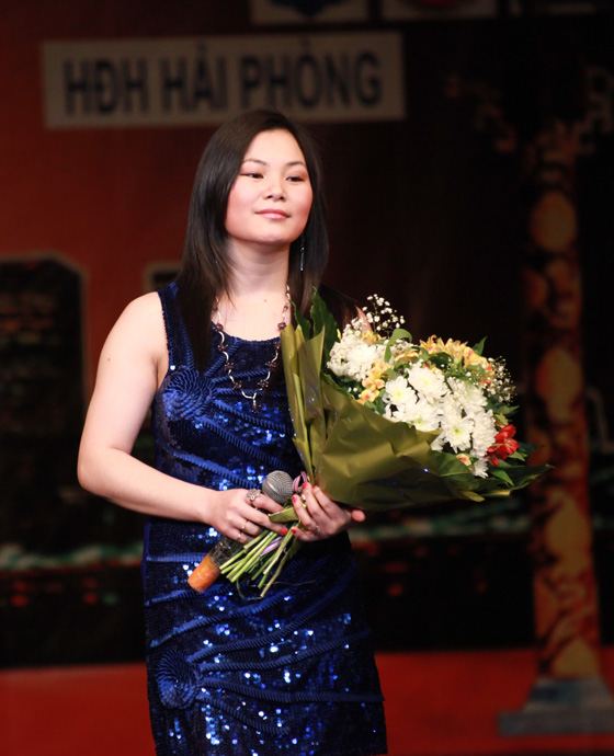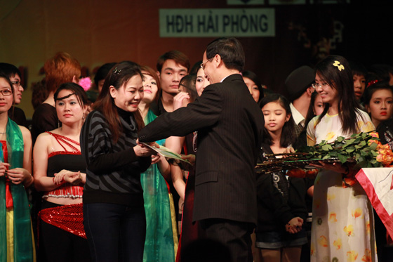 Đại sứ Phạm Xuân Sơn trao giải nhất đơn ca nữ cho Trần Thu Huyền  - Hội ĐH Nghệ An