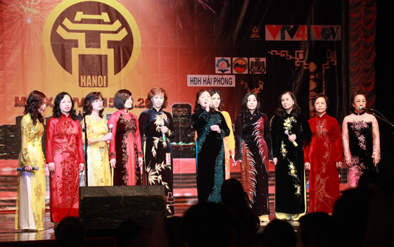 Tiết mục "Đảng đã cho ta một mùa xuân" do phu nhân các nhân viên Đại sứ quán biểu diễn thay lời chào mừng đêm Hội diễn