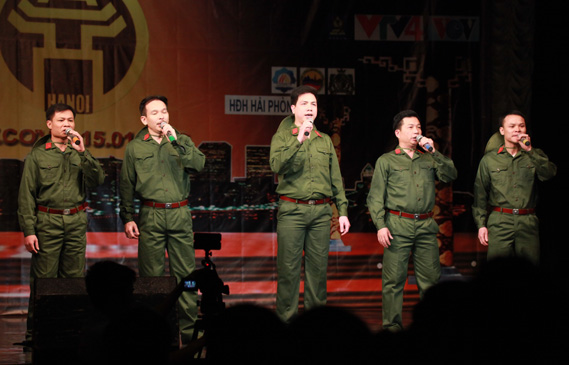 "Năm anh em trên một chiếc xe tăng" do đội văn nghệ Hội ĐH Hà Tĩnh biểu diễn
