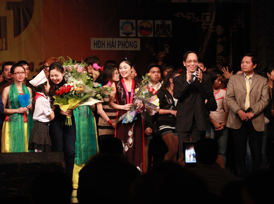 Đại sứ Phạm Xuân Sơn trao giải nhất cho phần thi  múa đôi của Vũ Thị Mi và Jakili