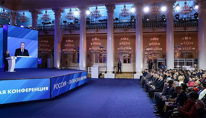 “Chúng tôi đã và đang tiếp tục vận động để châu Mỹ Latinh trở nên mạnh mẽ, độc lập và thịnh vượng hơn. Để đạt được mục tiêu này, chúng tôi sẵn sàng xây dựng sự hợp tác trên cơ sở song phương và trong khuôn khổ hợp tác chặt chẽ với các hiệp hội nhằm mục đích hội nhập với các nước trong khu vực Mỹ Latinh”, nhà lãnh đạo Nga nói thêm.