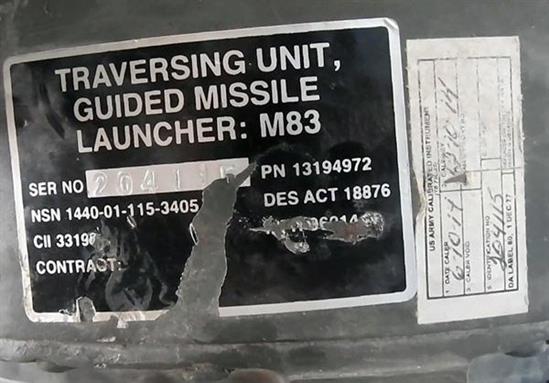 Trên bệ phóng M83 của BGM-71 TOW vẫn còn nguyên xi số seri và các thông tin liên quan.