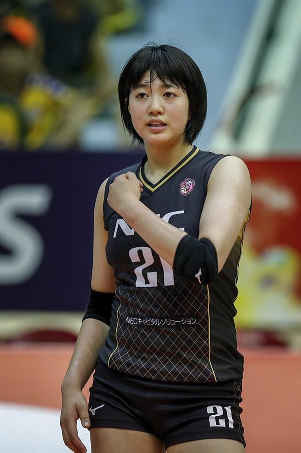 Tay đập Ayumi Yoshida của CLB NEC (Nhật Bản). VĐV mang số áo 21 sinh năm 2000, cao 1m76.