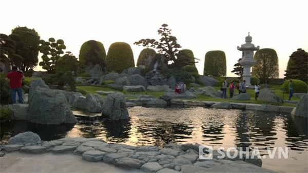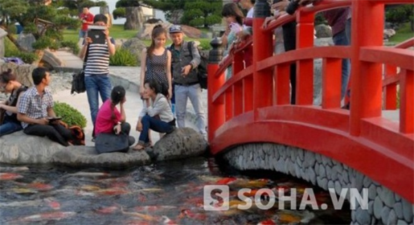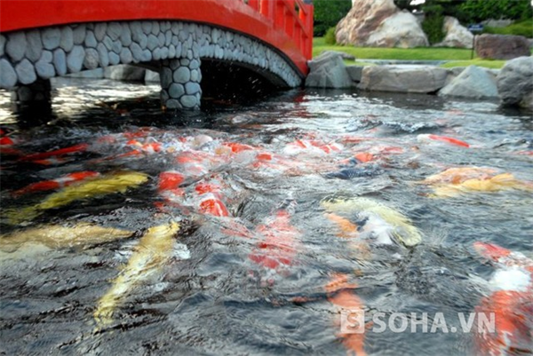 Hiện trong hồ đang nuôi 220 con cá Koi, toàn bộ thức ăn của loại cá này được đưa từ Nhật sang và chúng sống trong môi trường nước từ 22 – 24 độ C.