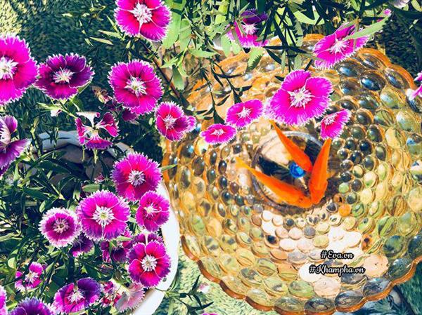 “Mình thấy khu vườn đẹp nhất là lúc bình minh và khi hoàng hôn buông xuống. Sáng thức dậy ngắm nhìn những bông hoa ngậm sương đêm khoe sắc đỏ, tím,… lòng mình lại cảm thấy nhẹ nhàng.