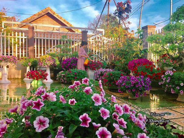 Không gian hoa nắng rực rỡ trước sân nhà chị Dung khiến ai ai đi qua cũng phải dừng chân đứng lại ngắm nhìn và không ngớt lời trầm trồ.
