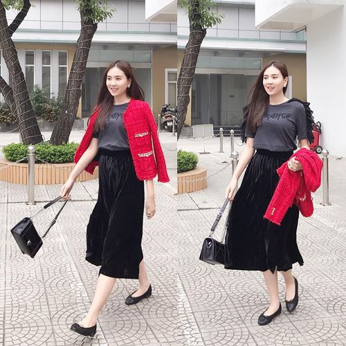 Trên tay Mai Ngọc là "bà hoàng của các dòng túi" Hermes với mức giá sấp xỉ 500 triệu đồng. "Cô nàng thời tiết" còn khéo léo mix kèm đôi dép cùng thương hiệu trị giá 15 triệu đồng.