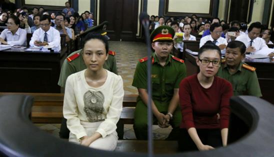 Bị cáo Phương Nga, Thùy Dung tại phiên xử.