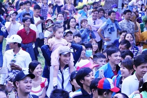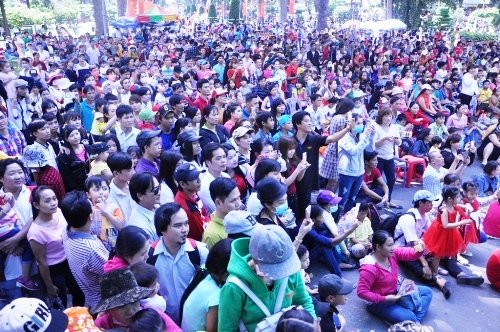 Sáng 1/1/2017, ngày đầu năm mới, hàng nghìn người dân TPHCM và các tỉnh thành lân cận đổ về các khu vui chơi trên địa bàn TPHCM như KDL Suối Tiên (Q.9), KDL văn hóa Đầm Sen (Q.11), Thảo Cầm Viên Sài Gòn (Q.1) để vui chơi.
