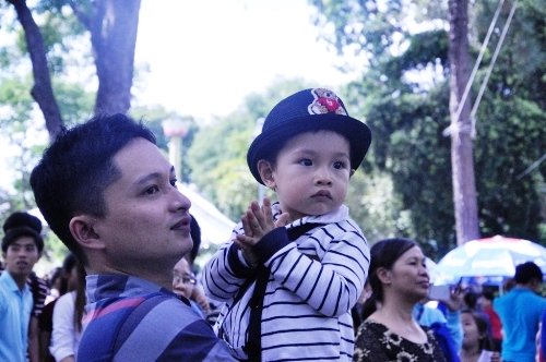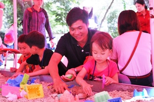 Các em nhỏ được phụ huynh dẫn đi chơi.