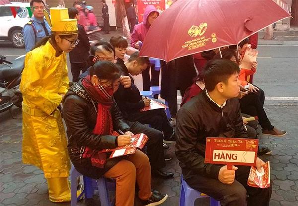 Ngay từ 5h30' sáng 25/2 (ngày mùng 10 Âm lịch) theo quan niệm dân gian là ngày vía Thần tài, tại các cửa hàng vàng ở Hà Nội người dân đã xếp hàng rất đông chờ đợi mua vàng lấy may.