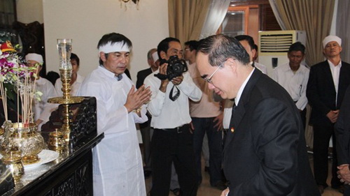 Ông Nguyễn Thiện Nhân -  Ủy viên Bộ Chính trị, Chủ tịch UBTW Mặt trận Tổ quốc Việt Nam viếng ông Bá Thanh. Ảnh: Tiền Phong